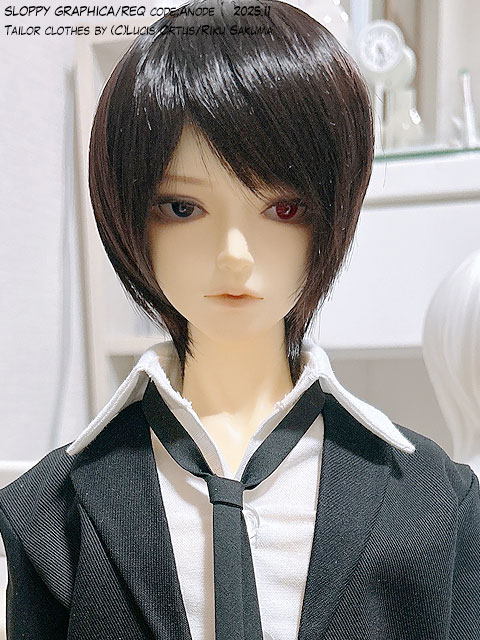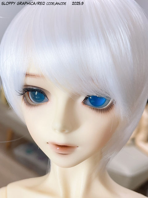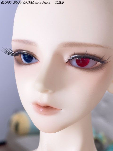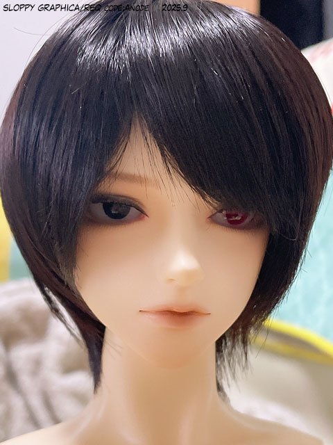 目が特徴的。ドールの目って大きくてくりっとしてるのが多いですが、この子目が細い。 アニメのクール系キャラみたいな目。なのでアイが半分見える程度。