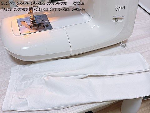 袴の裾は筒状に縫ってしまいました。事情により膝下を紐で結んで止めてます。本物の紐を結ぶ位置は膝上ですので間違えませんよう。